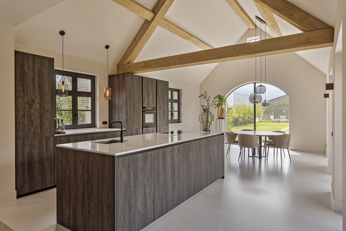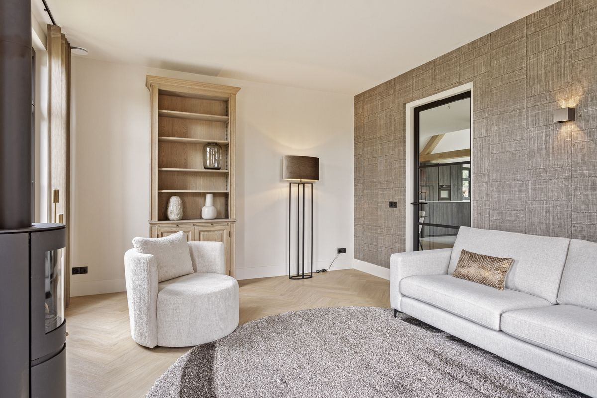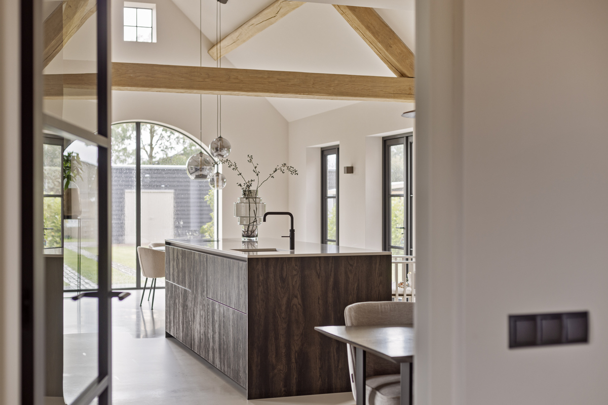 Wat een prachtige kempische woning! En ziet u dat leuke bijgebouw? Dat is een aanleunwoning. Leuk he? Helemaal in stijl. De kempische details zijn rondom de woning te vinden, bijvoorbeeld in het metselwerk, het dichtgemetselde raam, de steensoort, de kozijnen, noem maar op. Het interieur van deze woning past prachtig bij de stijl en vloeit mooi in elkaar over. Kortom, weer een mooi plaatje zo!